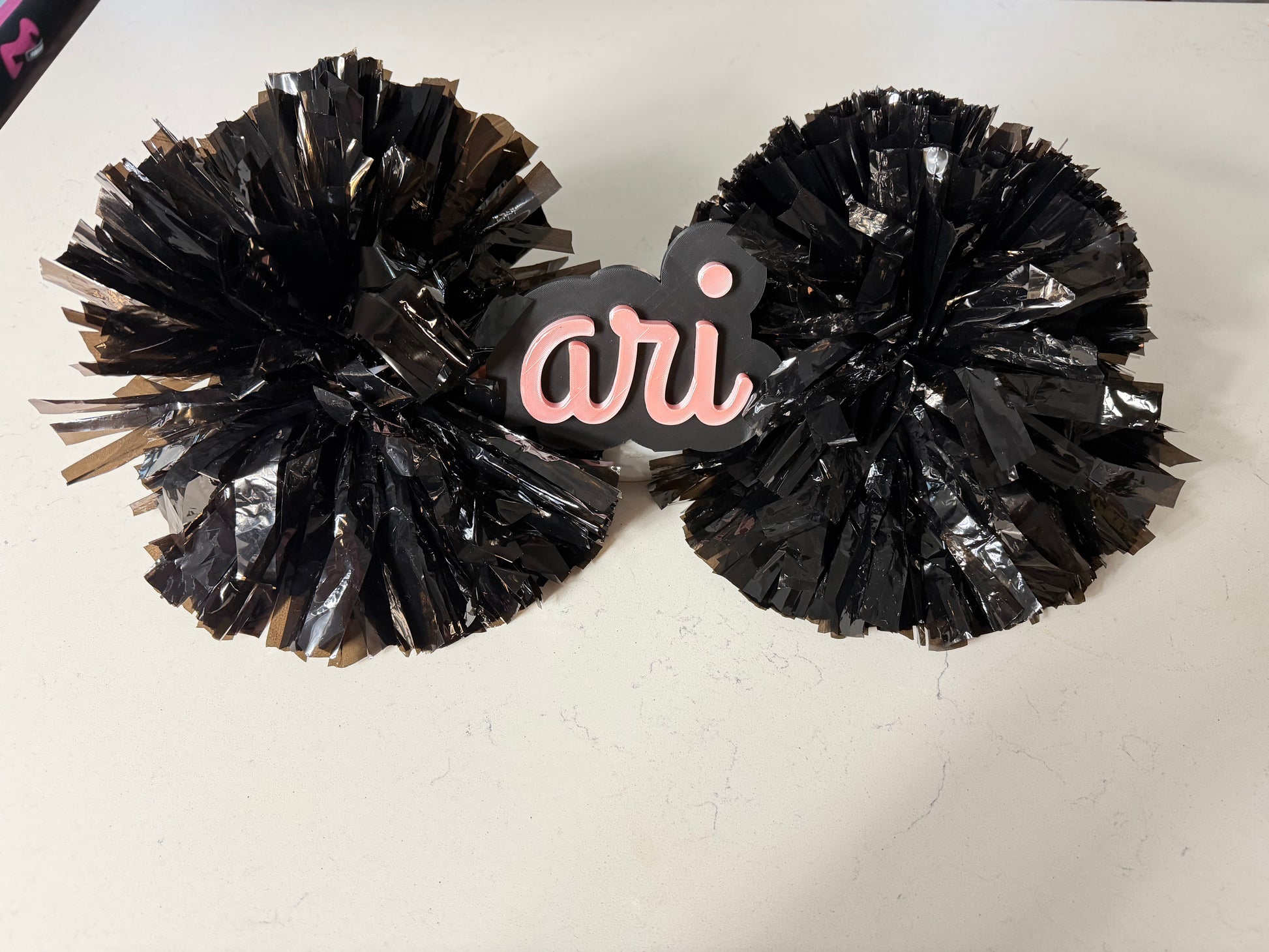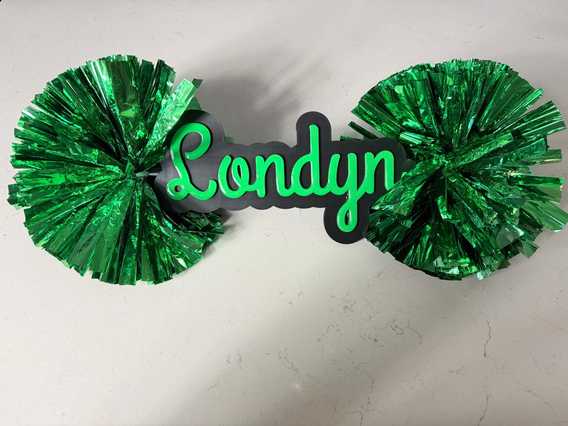 This custom cheer stick comes with two fluffy pom poms and a personalized handle featuring your cheerleader’s name. Lightweight, fun, and perfect for cheering loud at games, competitions, and pep rallies!