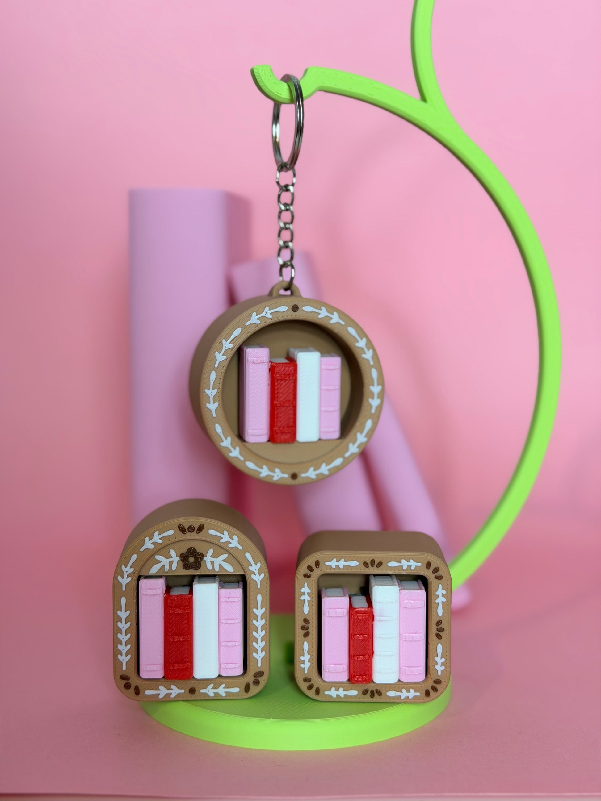 Bring a little cozy charm and calm clicking to your day with this mini book nook fidget clicker! Designed to look like a tiny decorative shelf, each piece features a stack of your fav reads clicker tucked inside—perfect for bookworms, and fidget fans alike.